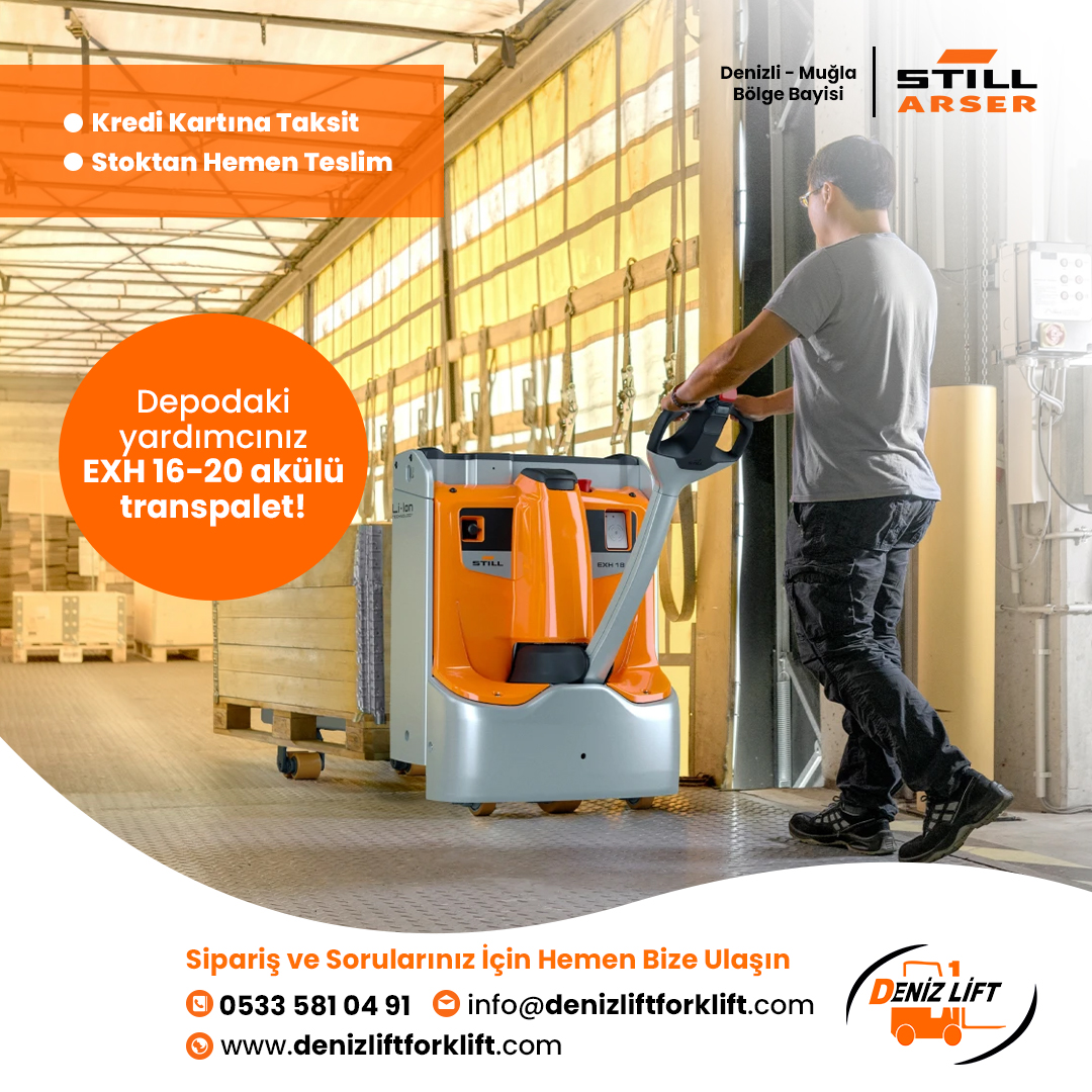 - Genel Özellikler: Li-Ion batarya *** 4 yıl akü garantisi *** 1.5 saatte tam şarj *** Çalışma aralarında şarj *** 1.6 - 2 ton yükleme kapasitesi *** 4.85 metre kaldırma yüksekliği *** 15 km/h hız *** 3 ya da 4 tekerlek seçeneği *** 2 yıl veya 2 bin saat garanti