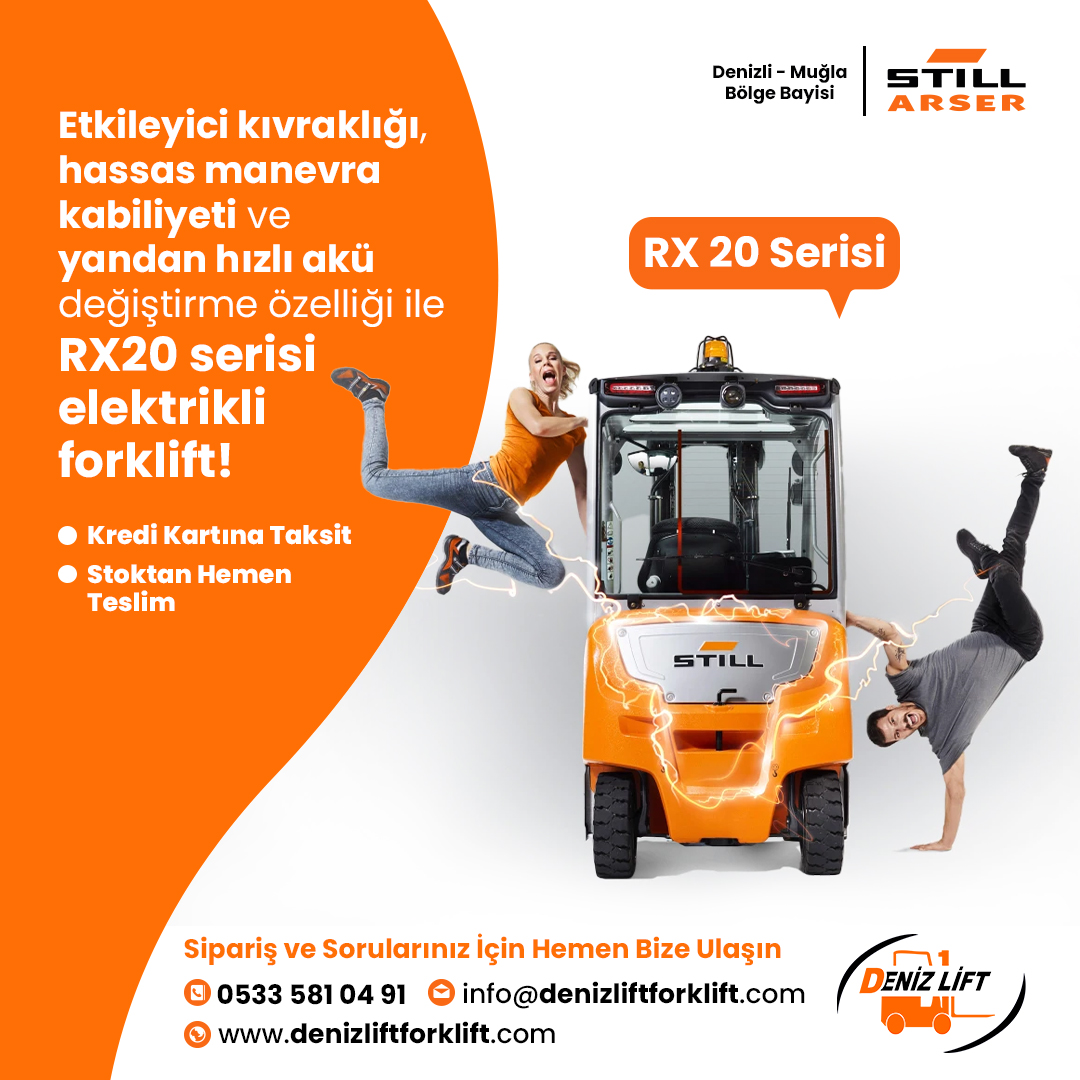 - Genel Özellikler: Li-Ion batarya *** 4 yıl akü garantisi *** 1.5 saatte tam şarj *** Çalışma aralarında şarj *** 1.6 - 2 ton yükleme kapasitesi *** 4.85 metre kaldırma yüksekliği *** 15 km/h hız *** 3 ya da 4 tekerlek seçeneği *** 2 yıl veya 2 bin saat garanti